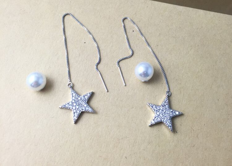 動く度に揺れるパールと星のデザインが、大人可愛い女性の魅力を引き立ててくれるピアス☆