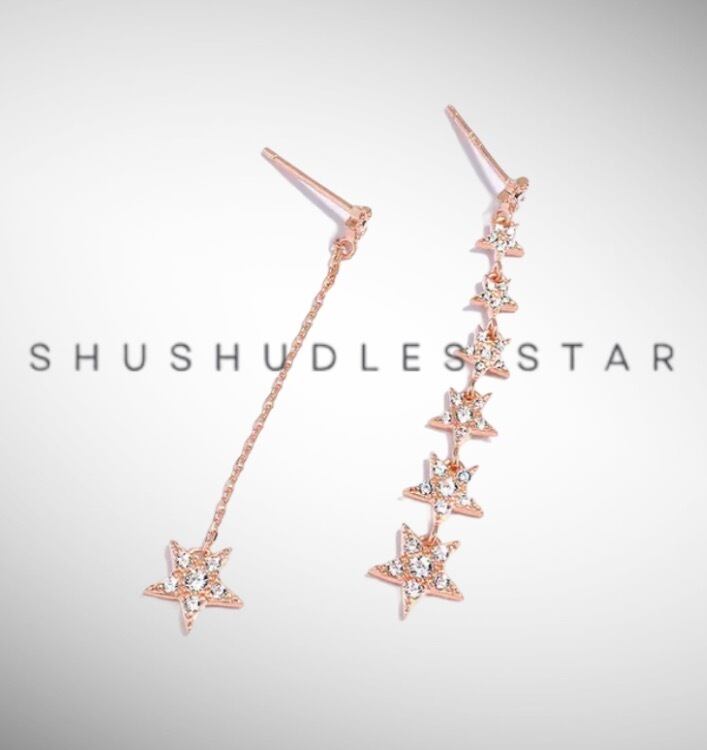 甘すぎないクールな雰囲気が魅力的な、アシンメトリースターピアス☆