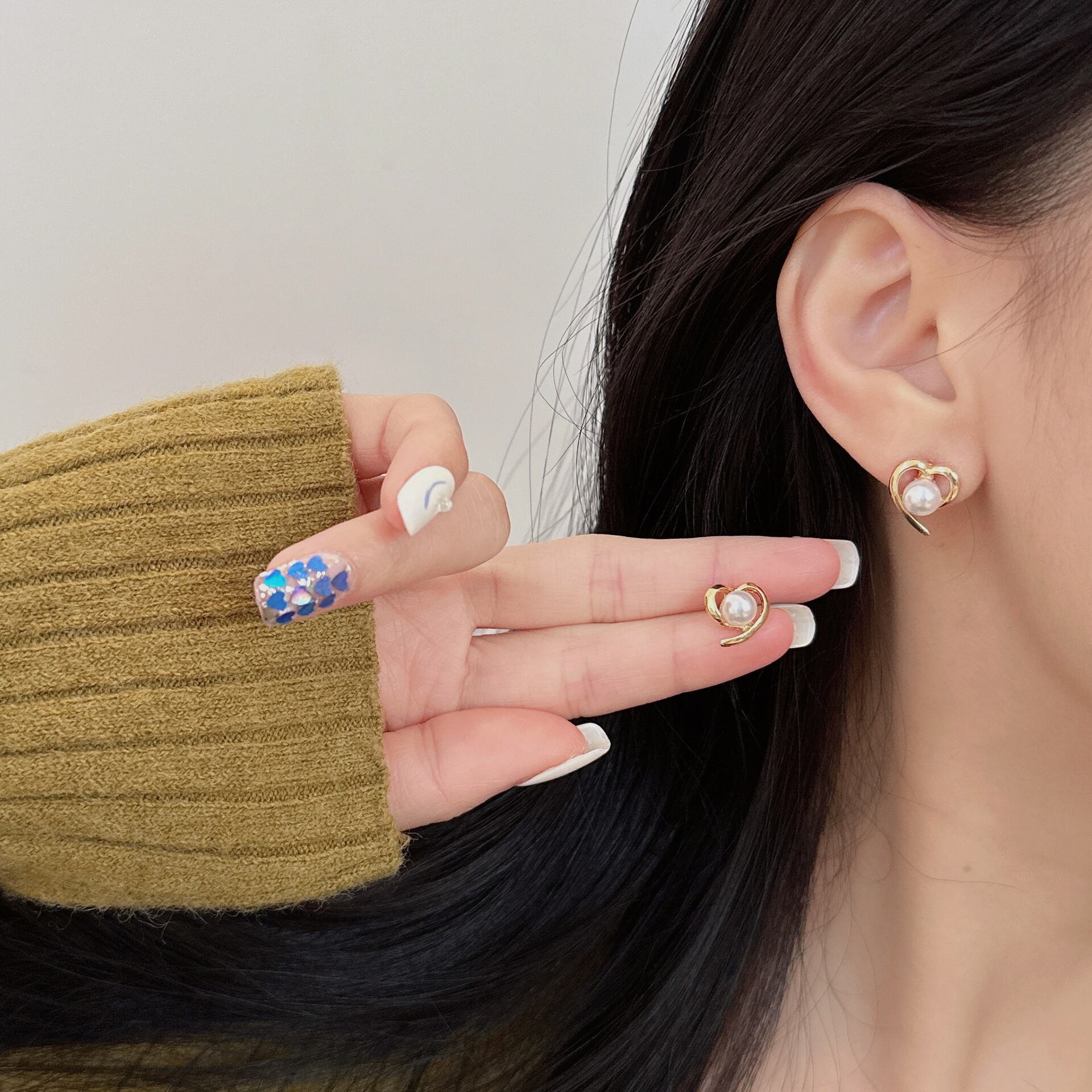 ハートの形をしたゴールドラインの中に、可愛いらしいパールが付いたミニマルピアス☆