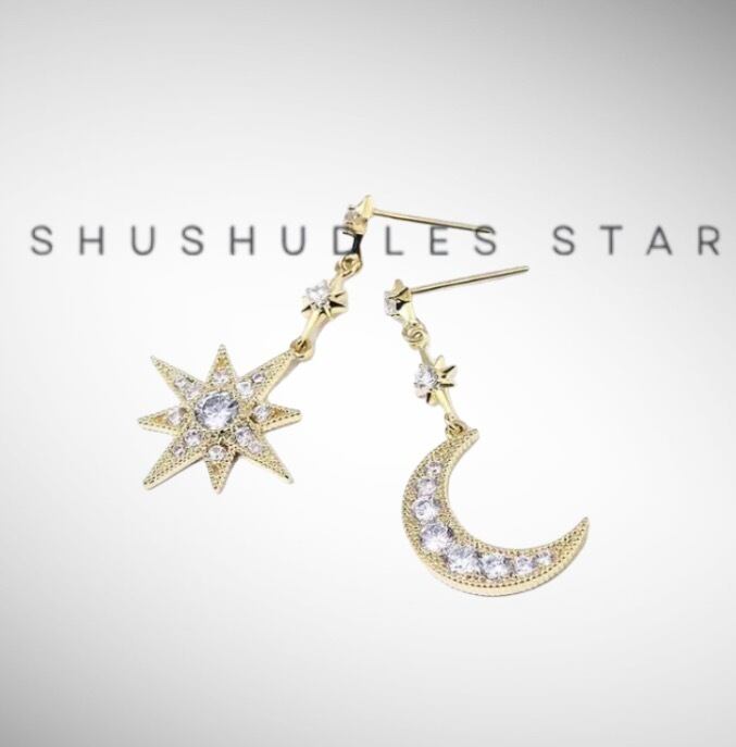 ビジューが煌めく星と三日月モチーフは、存在感があって大人可愛い雰囲気を演出しています☆