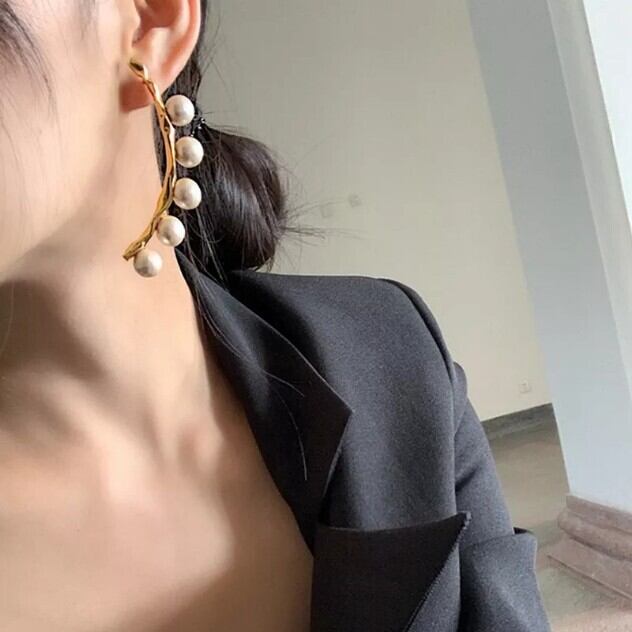 大ぶりのパールがオシャレ感を演出する、ビッグパールアシンメトリーピアス☆