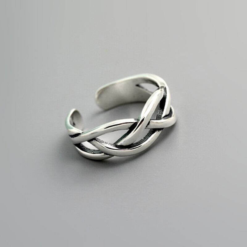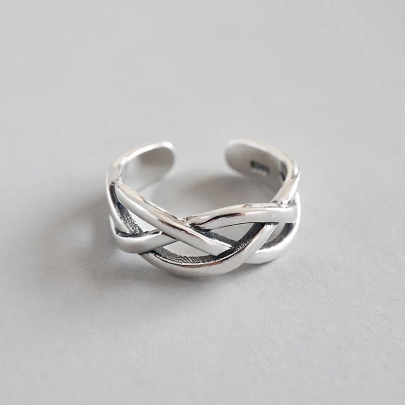 細身のリングで、メタルの質感が存在感を放ち、墨入れ加工されたシルバーがクールな印象に☆