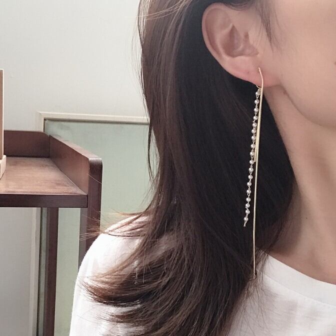 ロングパールと長さの違うロングチェーンをMIXしたチェーンピアス☆